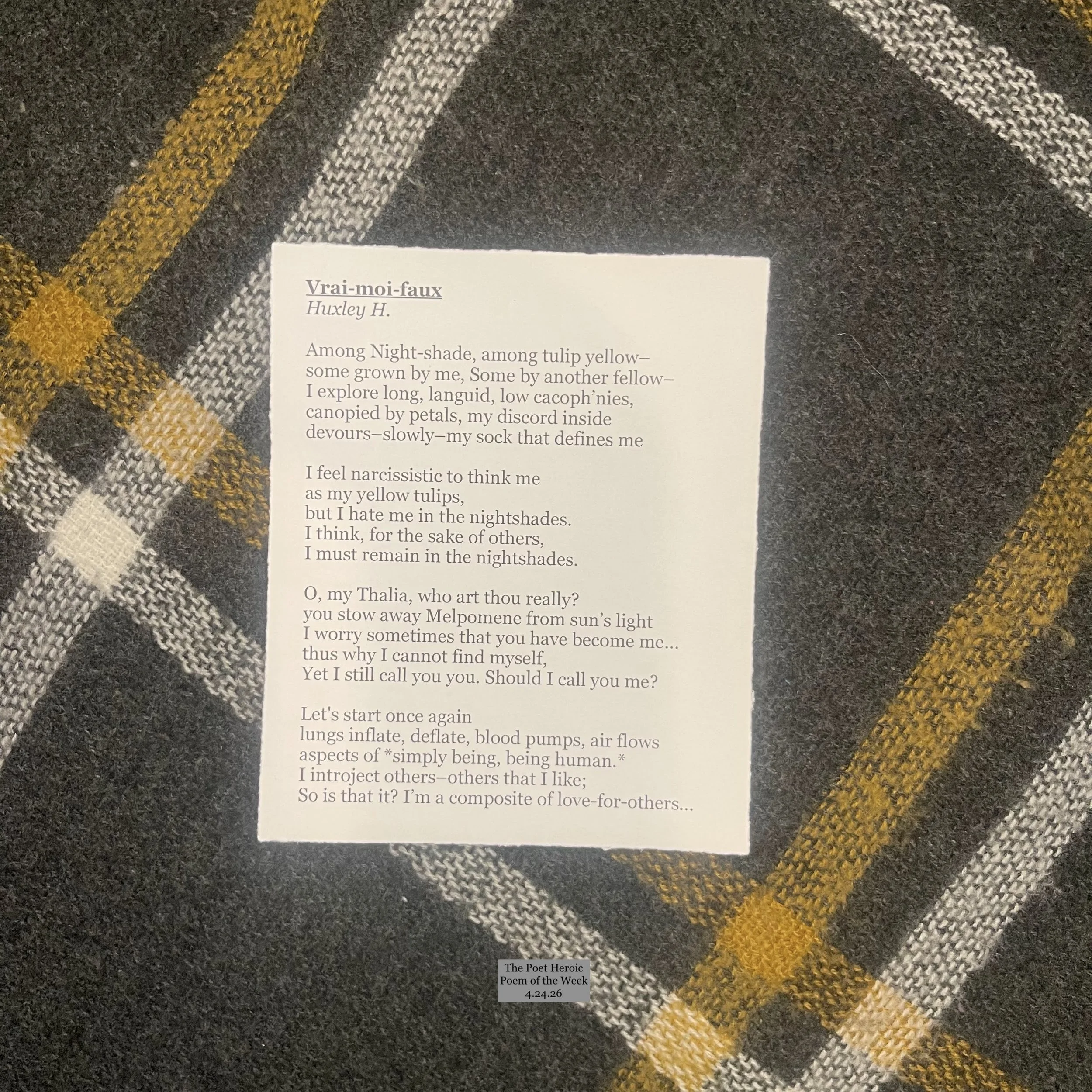 Huxley H. is an aspiring author and, as of current, published. He doesn’t usually write poetry, however he was